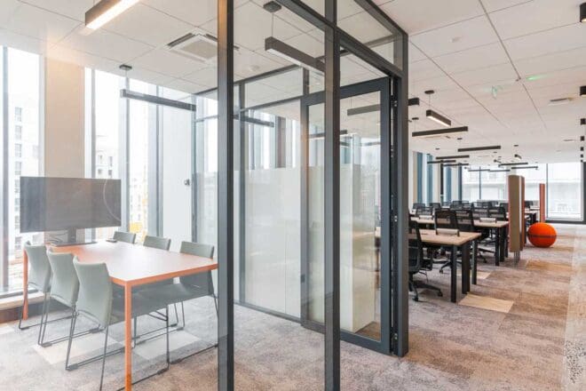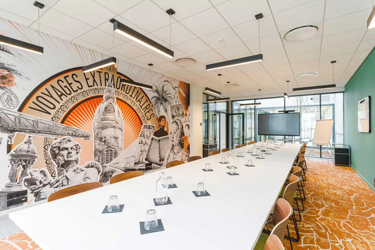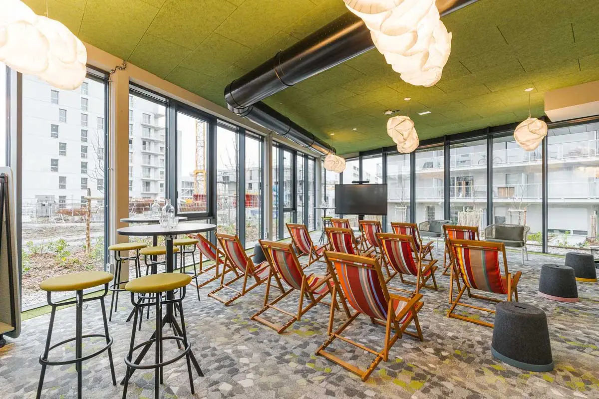 À Nantes, ce sont 2 300 m² de bureaux opérés, 300 postes de travail et trois salles de réunion pouvant accueillir de 15 à 50 personnes. L’accès est possible 24h/24, 7j/7, via un système de badge sécurisé. L’ensemble inclut également un espace lunch avec machine à café à grains, fontaine à eau, et des équipements de visio haut de gamme.