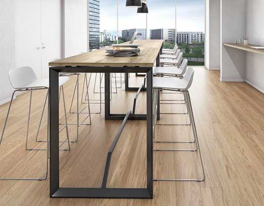 Enfin, pour aménager des espaces de réunion ou une caféteria, la table haute SH-SIMO est idéale. Son design élégant se décline en 4 teintes de bois ou en version monochrome blanche, pour l’adapter en toute simplicité au style d’ameublement global de l’entreprise.