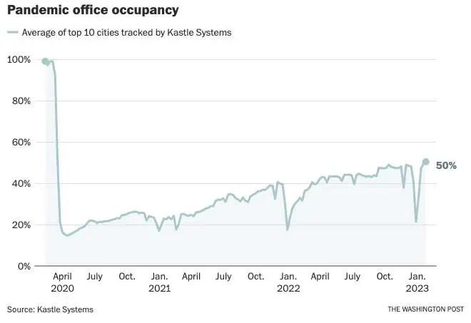 Selon les données de Kastle Systems, l’occupation des bureaux a atteint 50% la semaine dernière aux États-Unis, le plus haut niveau depuis le début de la pandémie en mars 2020. Alors que les employeurs cherchent à faire revenir leurs salariés au bureau, les experts estiment qu’il sera difficile de dépasser ce chiffre car le taux d’occupation a tendance à se stabiliser ces derniers mois.