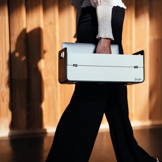Entre télétravail, flex office et réunions, avoir un espace de travail qui s’adapte n’est plus un luxe, mais une nécessité. Conçu en Autriche, Gustav répond à cette exigence avec brio. En intégrant un espace de rangement pour les outils essentiels et un support pour ordinateur, ce produit malin transforme n’importe quel endroit en un poste de travail ergonomique avec toutes les fournitures essentielles sous la main.