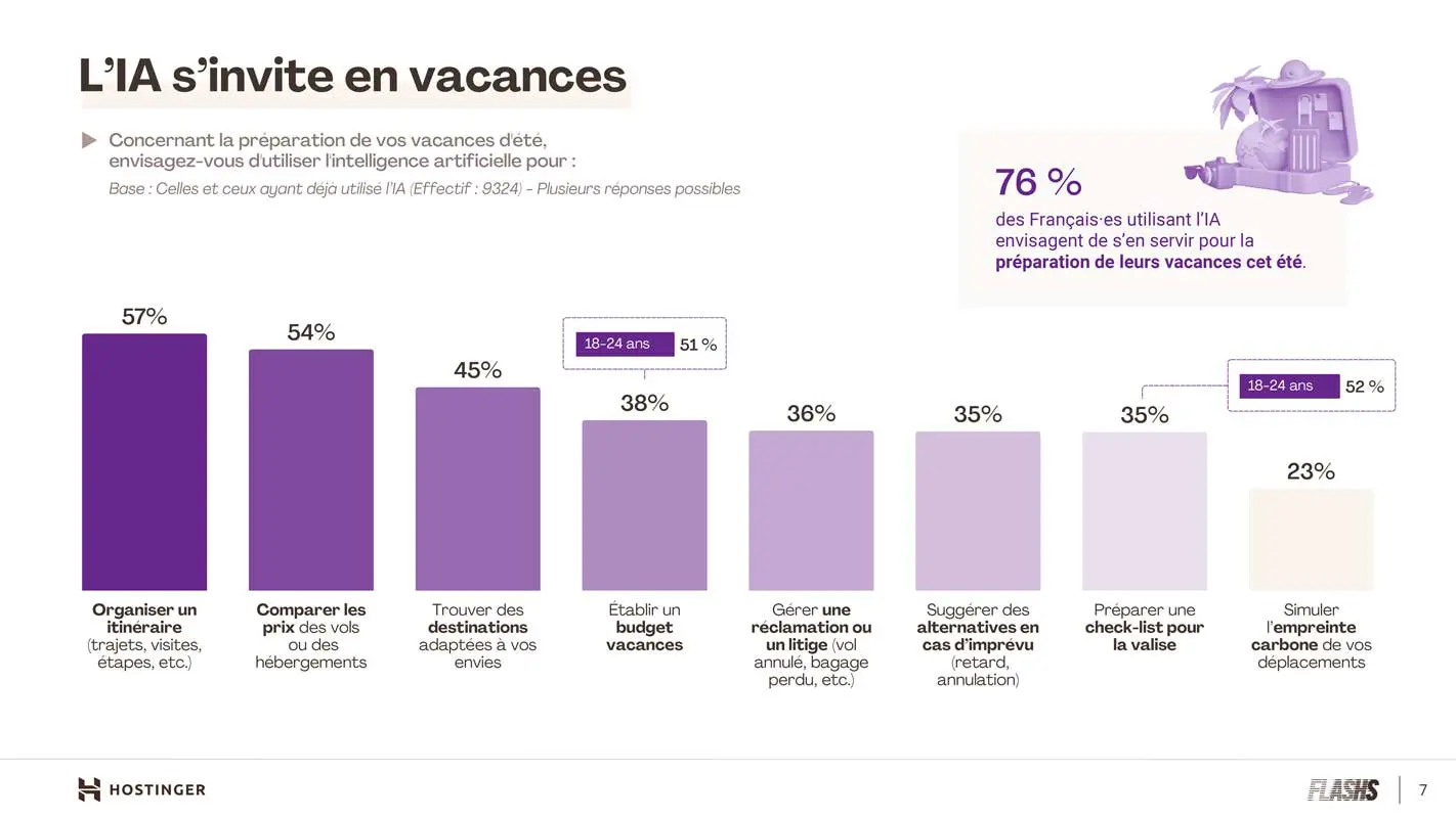 Cette perception s’ancre aussi dans les usages privés. 76 % des utilisateurs envisagent de s’en servir pour préparer leurs vacances : organiser un itinéraire, établir un budget, gérer un imprévu… L’IA devient un réflexe et traduit une confiance croissante, mais aussi une attente de simplicité et de gain de temps dans tous les domaines de la vie quotidienne.