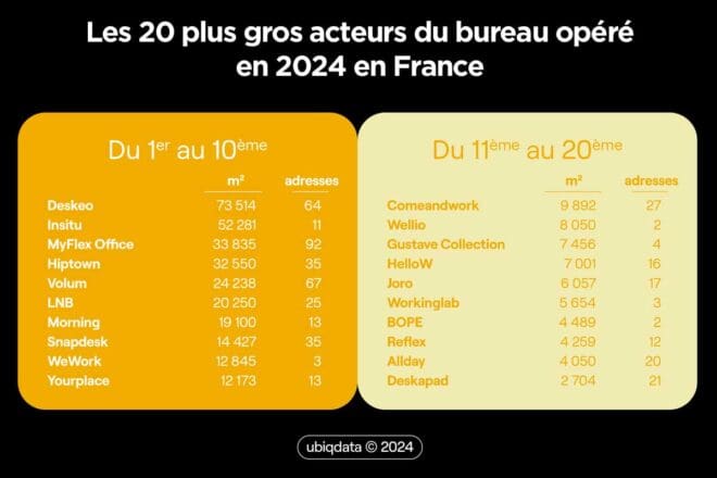 Les 20 principaux acteurs du bureau opéré en 2024 selon Ubiq