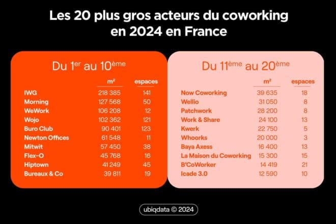Les 20 principaux acteurs du coworking en 2024 selon Ubiq