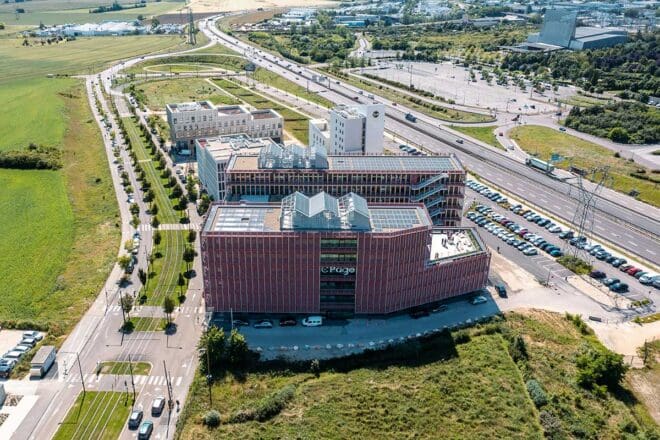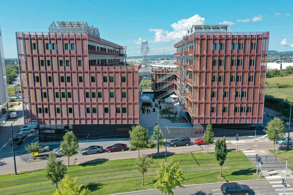 Ce qui rend Pepper unique, c’est aussi son approche écologique. Sa toiture photovoltaïque permet de couvrir 18 % des besoins énergétiques du bâtiment. Un îlot végétalisé relie Pepper à son voisin, le bâtiment Spicy, et recouvre les parkings souterrains, créant ainsi un environnement agréable et respectueux de la nature. Tout ici est pensé pour réduire l’empreinte carbone et offrir un cadre de travail en accord avec les valeurs environnementales des entreprises locataires