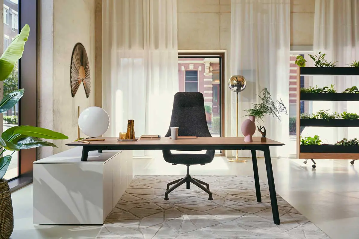 Autre nouveauté phare : la se:café team table. Avec ses dimensions généreuses (jusqu’à 4,80 m de long), cette table centrale devient un véritable pivot du quotidien au bureau. On s’y réunit pour échanger, célébrer un succès ou improviser un atelier d’équipe. Sa finition en placage de qualité lui donne un aspect haut de gamme, tandis que les accessoires intégrés (lampes, plantes, tablettes) renforcent sa polyvalence.