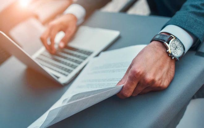 Documents professionnels à côté d'un ordinateur